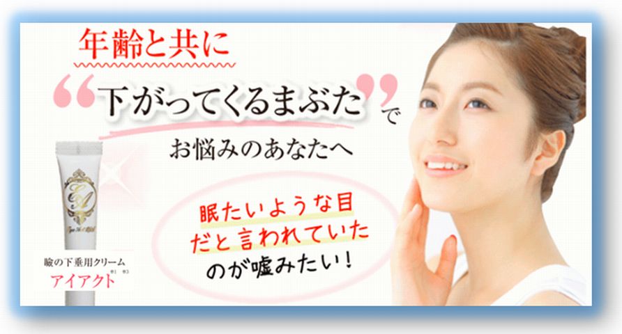 アイアクトは年齢と共に下がってくるまぶた用(商標登録済)クリームです。年齢と共に下がってくる「まぶた」を自宅でケアできる独自配合商品を完成させました。