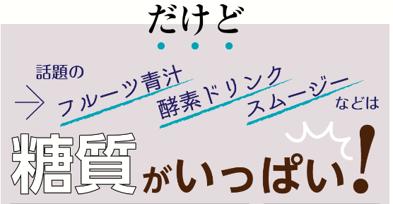 今流行っている話題のフルーツ青汁、酵素ドリンク、スムージーなどは糖質を多く含み、逆に肥満の原因になる場合があります。