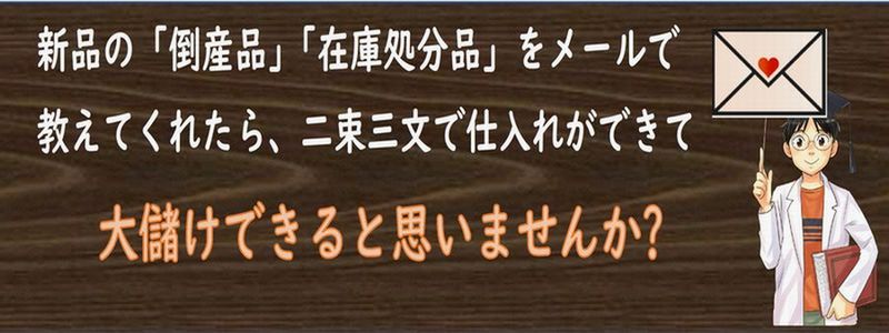 新品の倒産品、在庫処分品をメールで配信してくれたら、物品販売で大儲け!